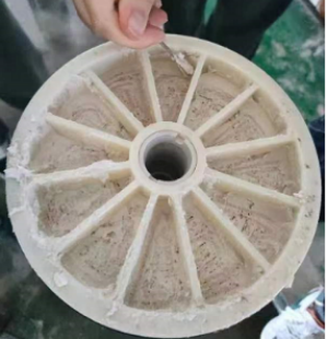 通过拆卸末段末支膜元件,通常可以在膜元件端面、膜壳端板等处观察到垢类物质,对膜元件进行控水后称重,膜元件的重量会比新膜明显增加(新膜元件重量一般在13.5KG左右)。