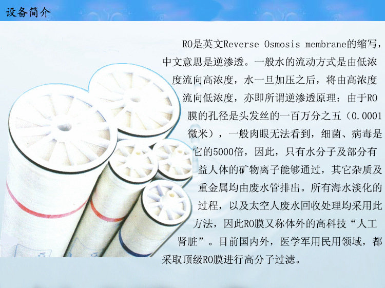 反渗透膜:美国陶氏DOW /美国海德能Espa、超CPA3、ROC10 /汇通UL31、LP22 /美国GE /世朝8040-BLN/8040-BE